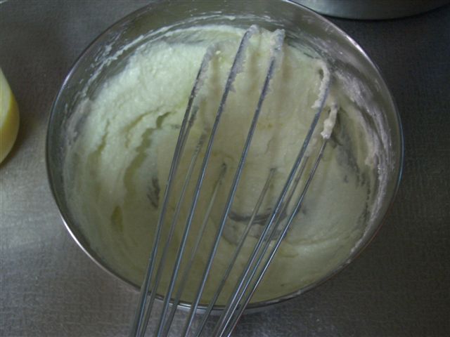 接著把融化的奶油(60g)跟砂糖(55g)、鹽(一小匙)攪在一起
