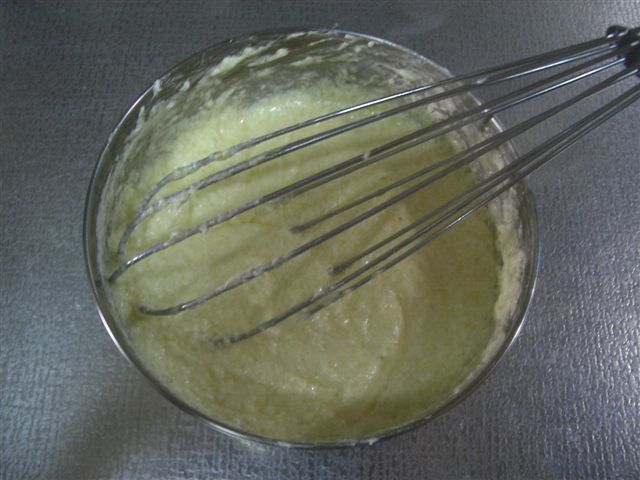然後把打散的蛋(一顆)分兩次混入